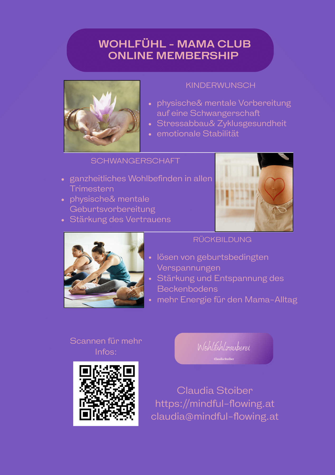Hallo, ich bin Claudia! Gerne begleite ich dich als WohlFÜHL-Mentorin durch diese Abschnitte des Mama-Seins: * Kinderwunsch * Schwangerschaft& Geburtsvorbereitung * Rückbildung
